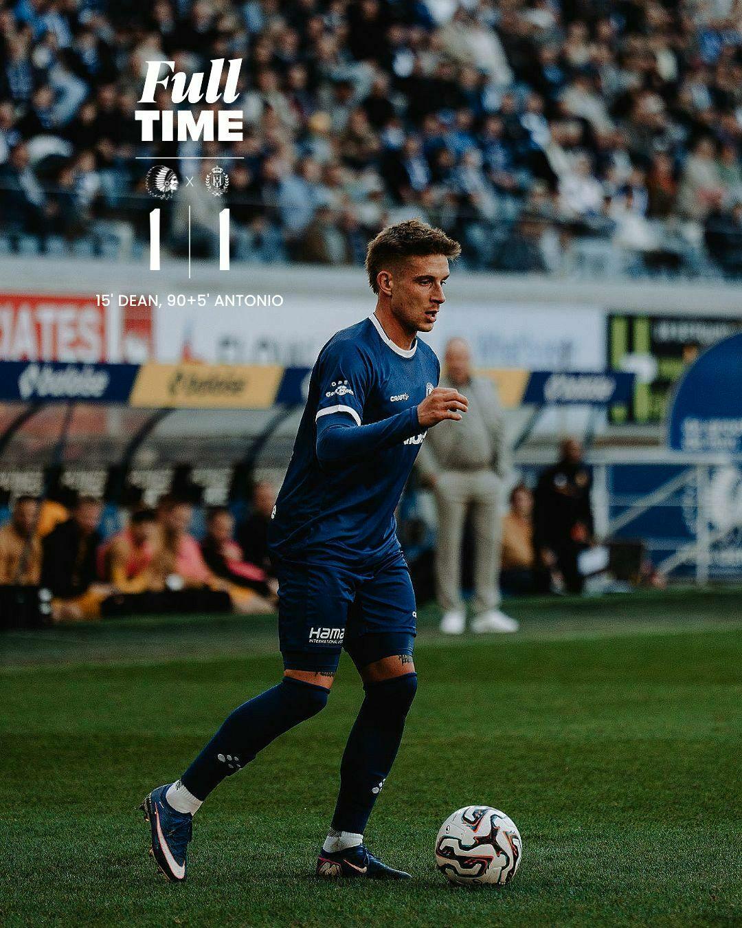 06-04-2026 - 20:09Na een scrimmage in de Gentse zestien krijgt Antonio de bal voor de voeten en hij legt de bal in de linkerhoek binnen: 1-1