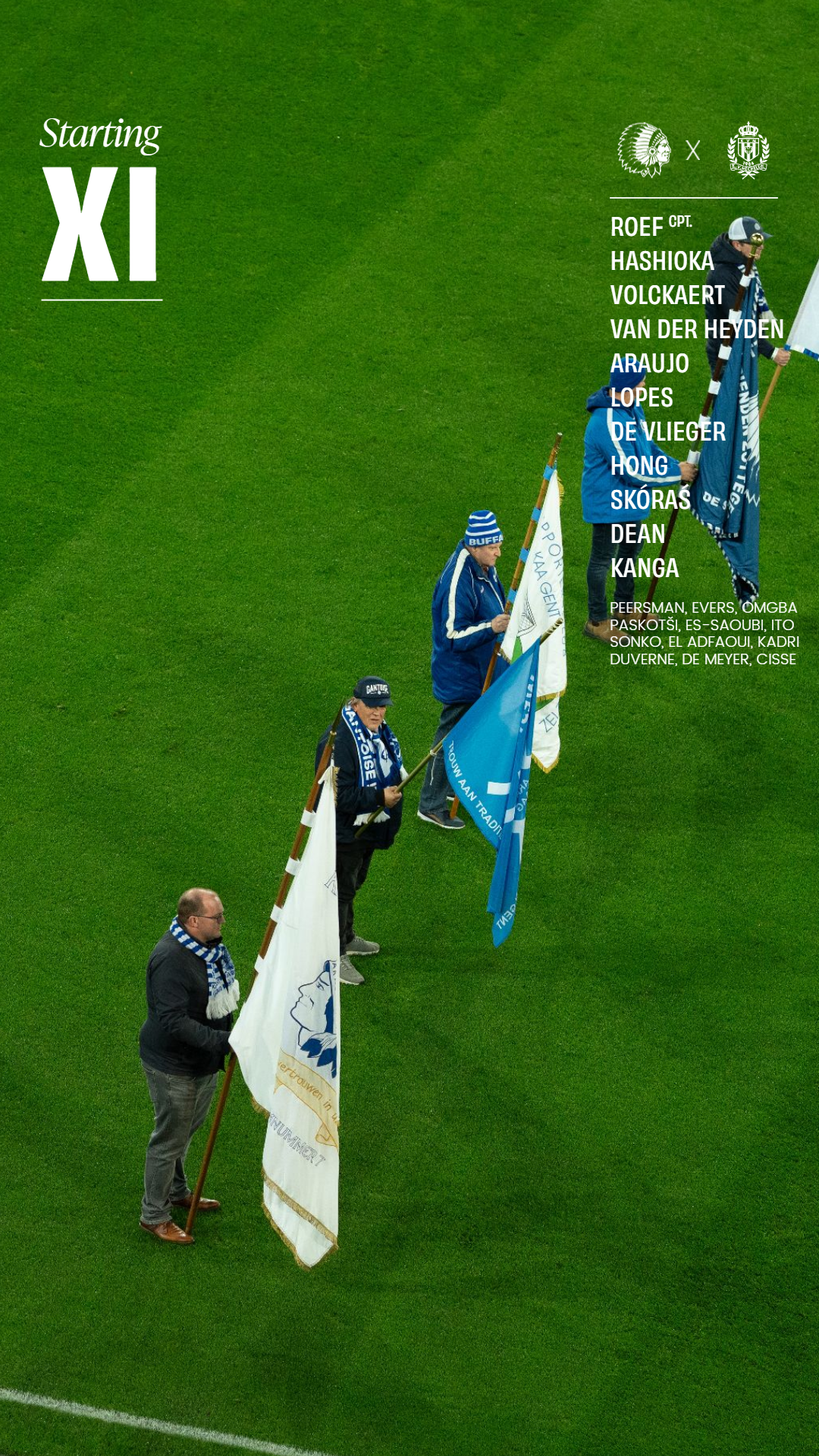 08-03-2026 - 16:04De opstelling van KAA Gent, u aangeboden door Canon: Roef, Hashioka, Volckaert, Van der Heyden, Araujo, Lopes, De Vlieger, Hong, SkóraΕ, Dean, Kanga.