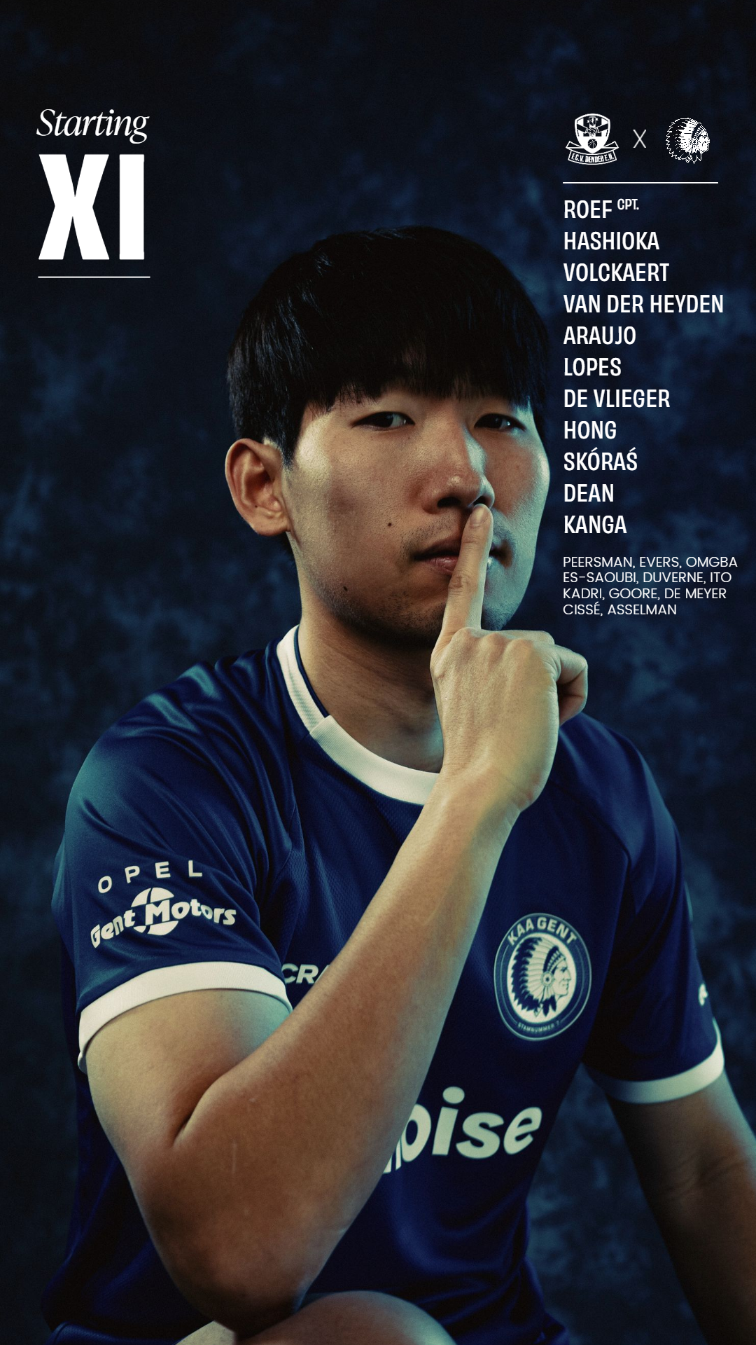 22-03-2026 - 18:33De opstelling van KAA Gent, u aangeboden door Canon: Roef, Hashioka, Van der Heyden, Volckaert, Araujo, Lopes, De Vlieger, Hong, SkóraΕ, Dean, Kanga.